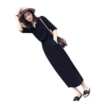 Fanchy 2021 New chiffon split pocket dress women Summer temperament thin high medium long version small black skirt
