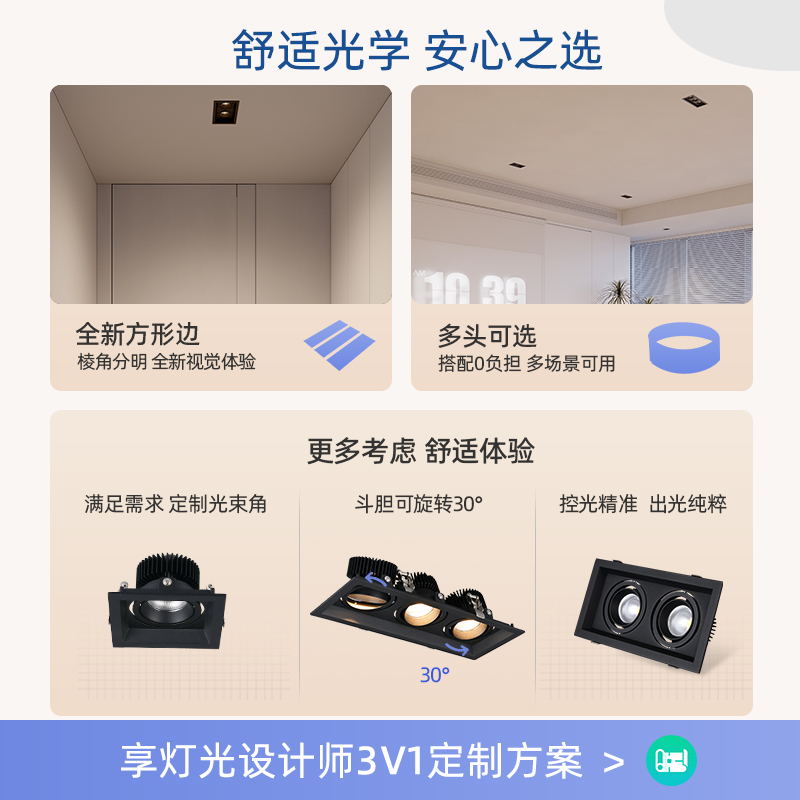 First knowledge of lighting spotlight led bold lamp double-headed three-headed embedded black grille lamp design without main lamp for the whole house