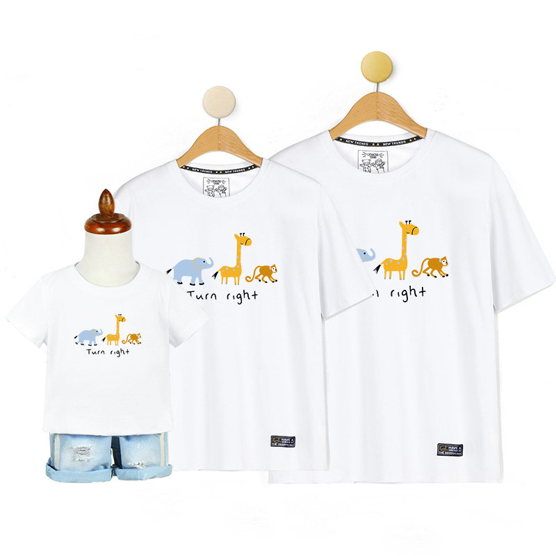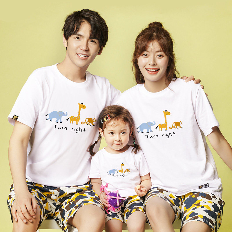 Pro-son clothes family of three-mouth quad high-end mother and son foreign pie summer cartoon pure cotton short sleeve T-shirt 2022 new wave