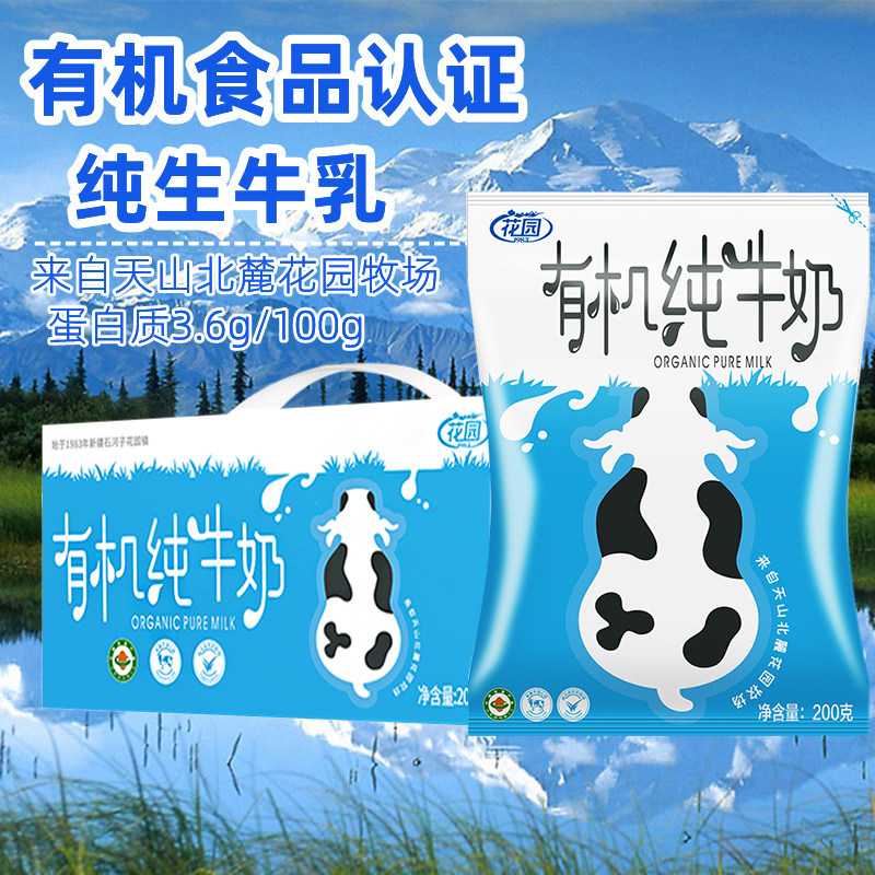 New date Xinjiang Garden Organic Milk 200g*16 bags of whole pack of whole-fat pure milk nutritional breakfast pure milk