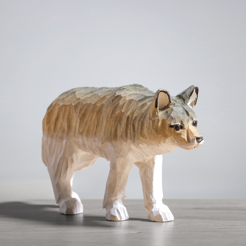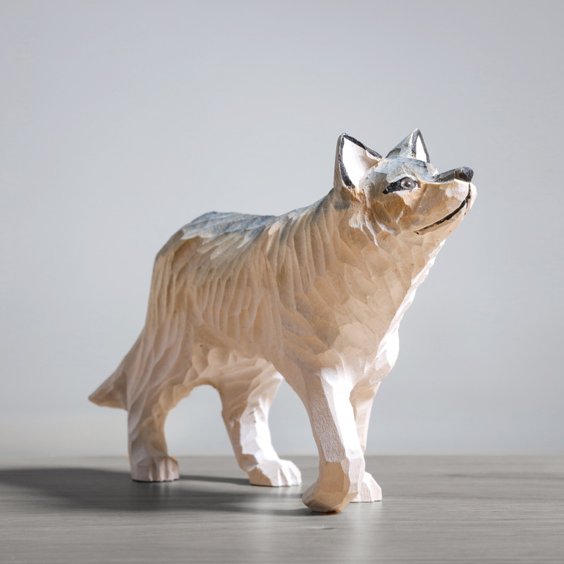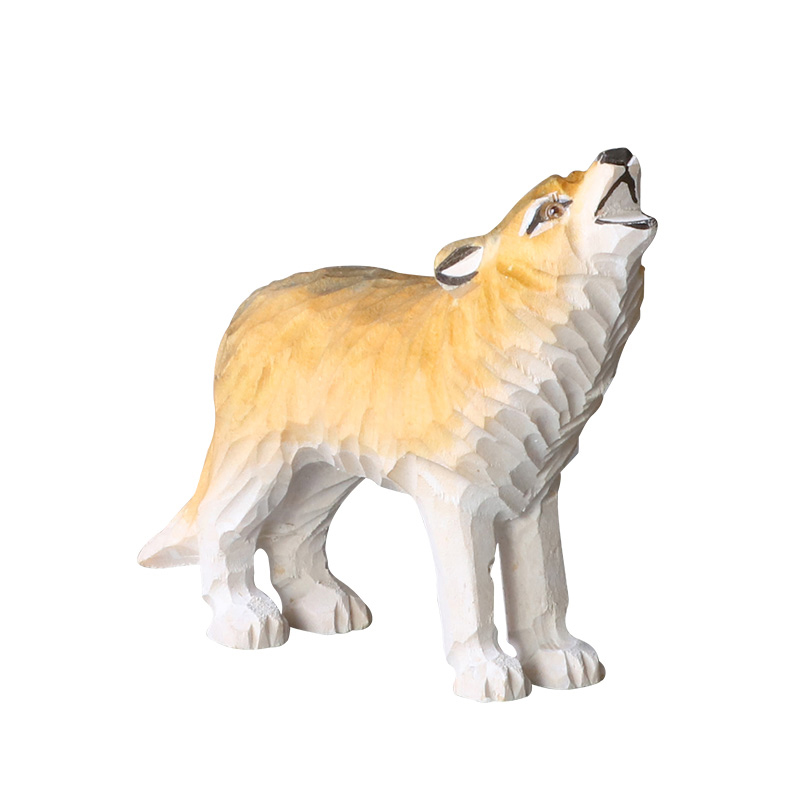 Handmade Solid Wood Carved Wolf Totem Ornament New Year Christmas Gift Creative Wooden Wolf TV Background Wall Shelf