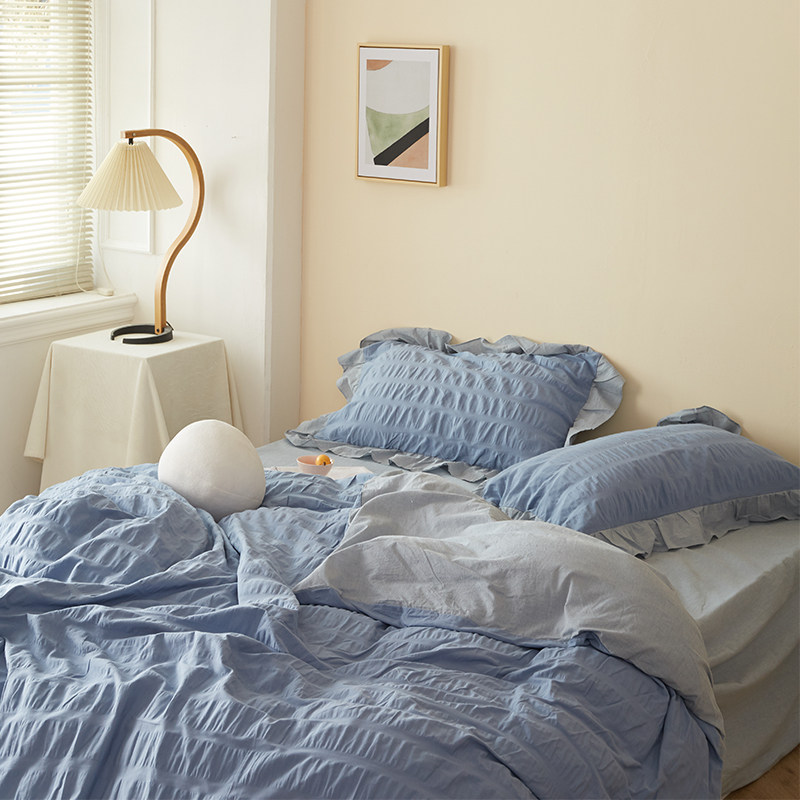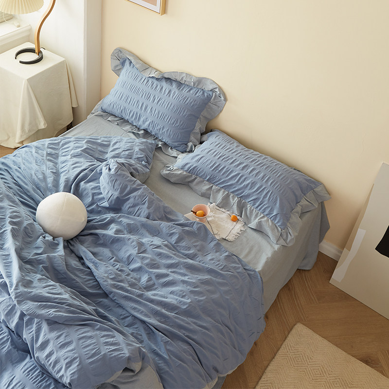 (Home position) Morandi color pure cotton seersucker CWW skin-friendly Nordic simple cotton four-piece set double