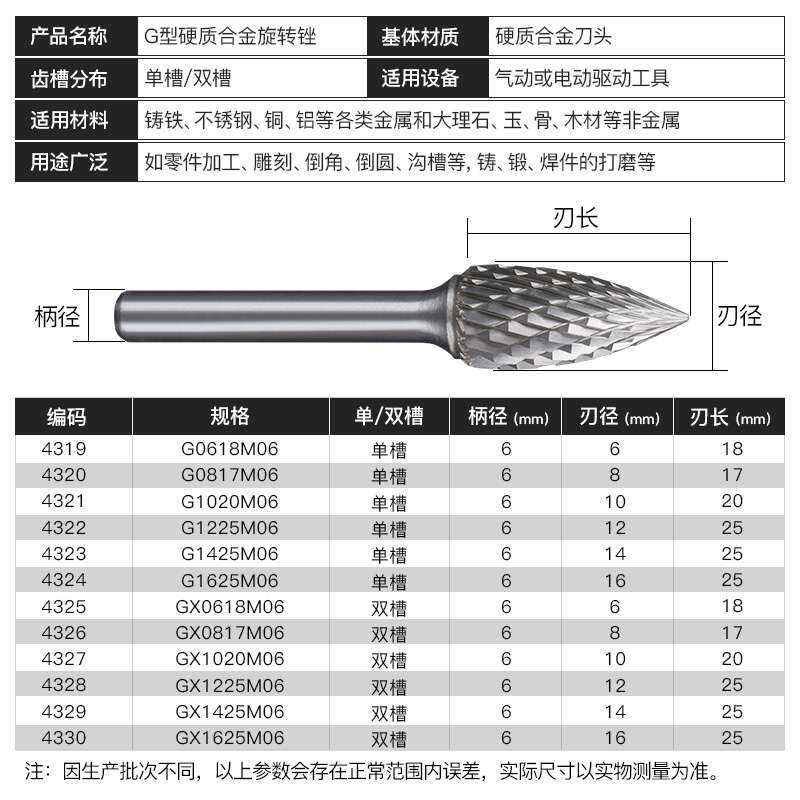 Carbide rotary file Tungsten steel grinding head Alloy milling cutter Tungsten steel grinding head G-arc tip