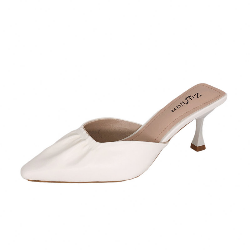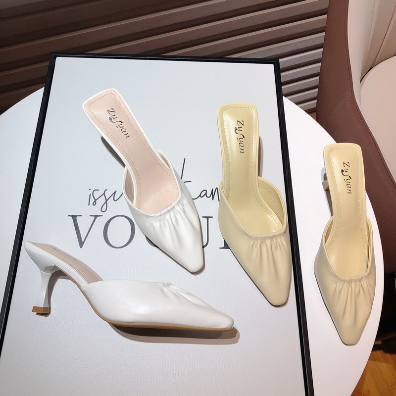 Baotou lazy half slippers women wear Korean version summer new stiletto high-heeled net red sandals and slippers pointed toe mules