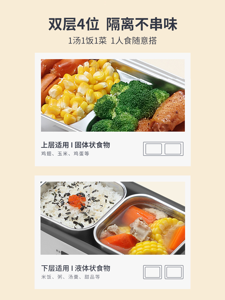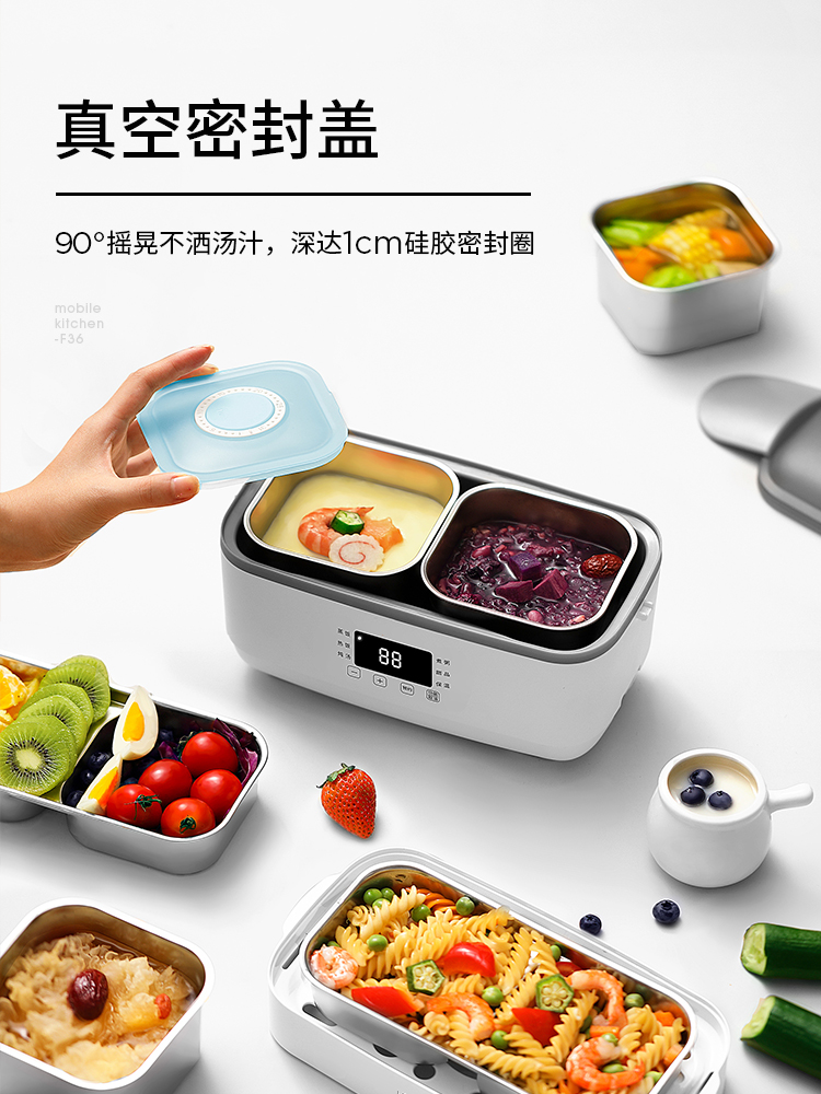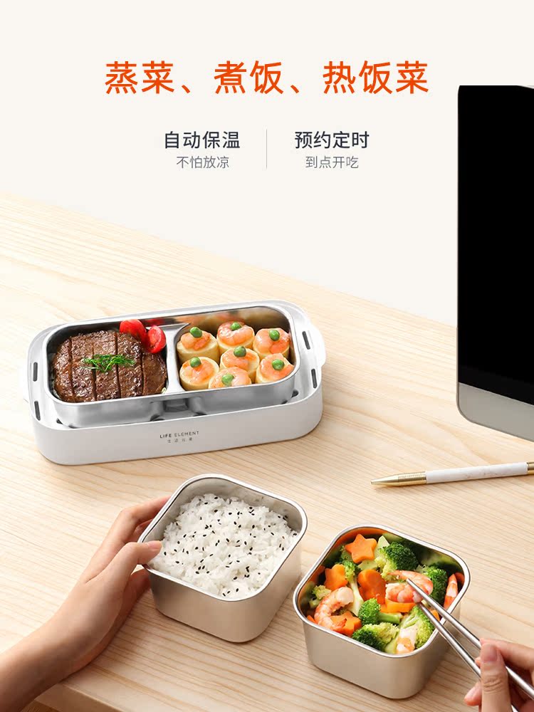 Cooking electric heating lunch box double-layer plug-in office heating insulation multi-functional small water injection portable lunch box