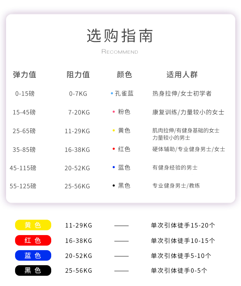 Pink (15~45lbs free storage bag) Yellow 25~65lbs free storage bag) Red (35~85lbs free storage bag) Blue 45~115lbs free storage bag] Black 5