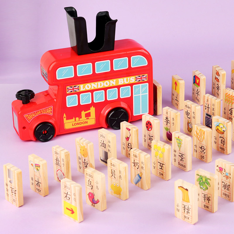 Dominoes Small train children Puzzle Toys Literacy Building Blocks Boys 3-6-year-old Electric automatically put on the car