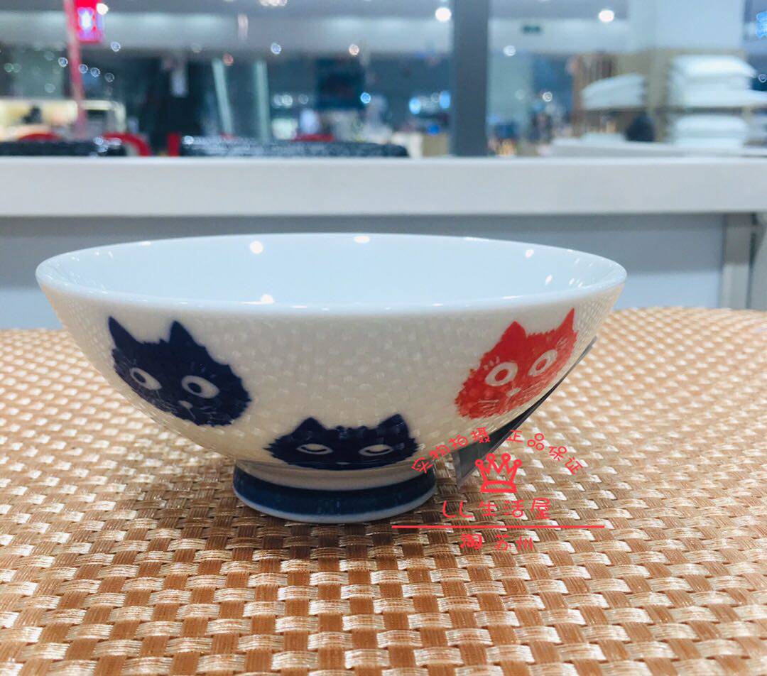 Japan's Daiso DAISO cat pattern small bowl household eating rice bowl tea bowl ceramic shallow bowl made in Japan
