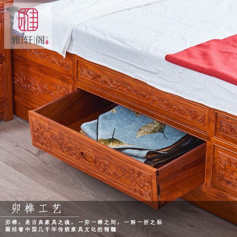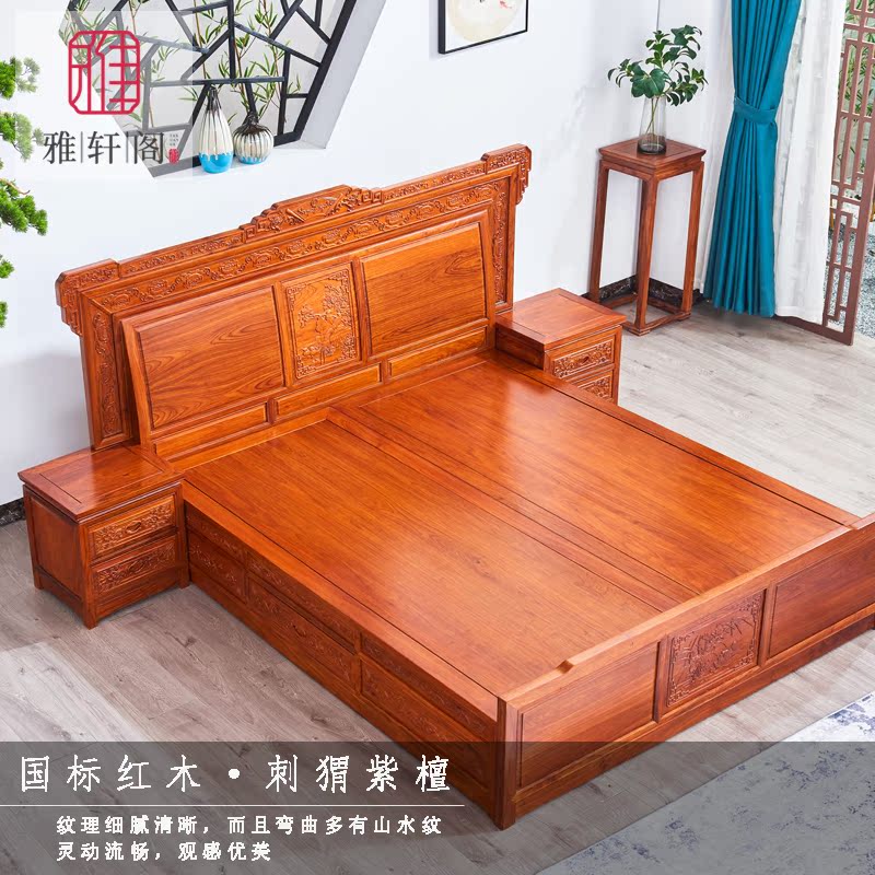 Hedgehog red sandalwood bed 1 8 meters mahogany furniture new Chinese style all solid wood 1 5 bedroom rosewood cabinet double bed