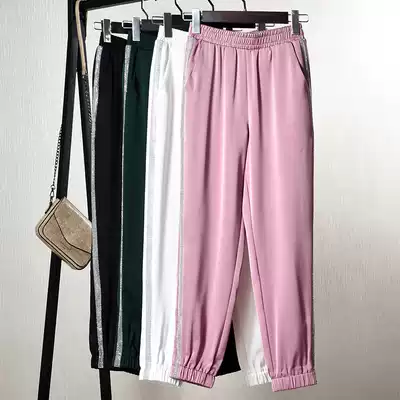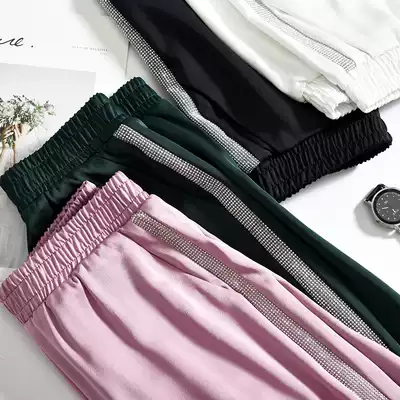Copper ammonia silk harem pants women's 2020 satin high waist loose thin nine-point pants drawstring ribbed sports casual pants