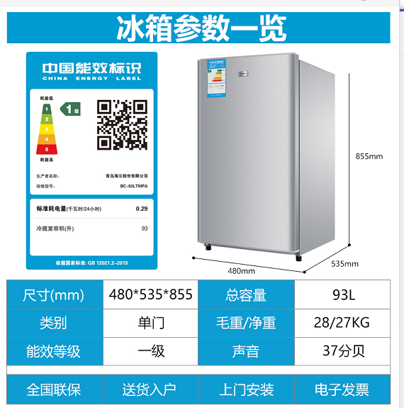 Haier commander mini small refrigerator small household single door refrigerator frozen single rental BC-93LTMPA