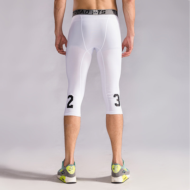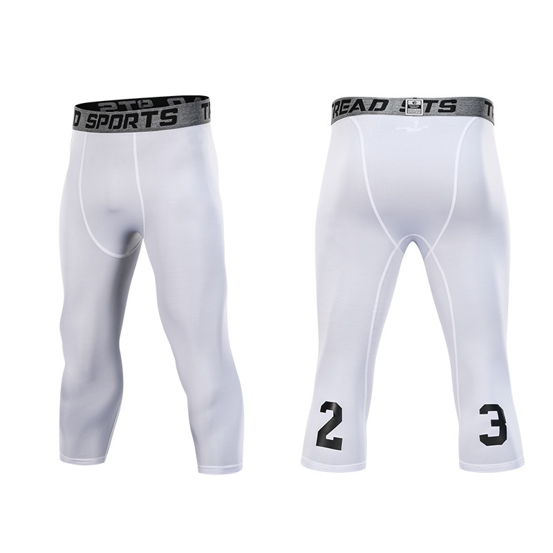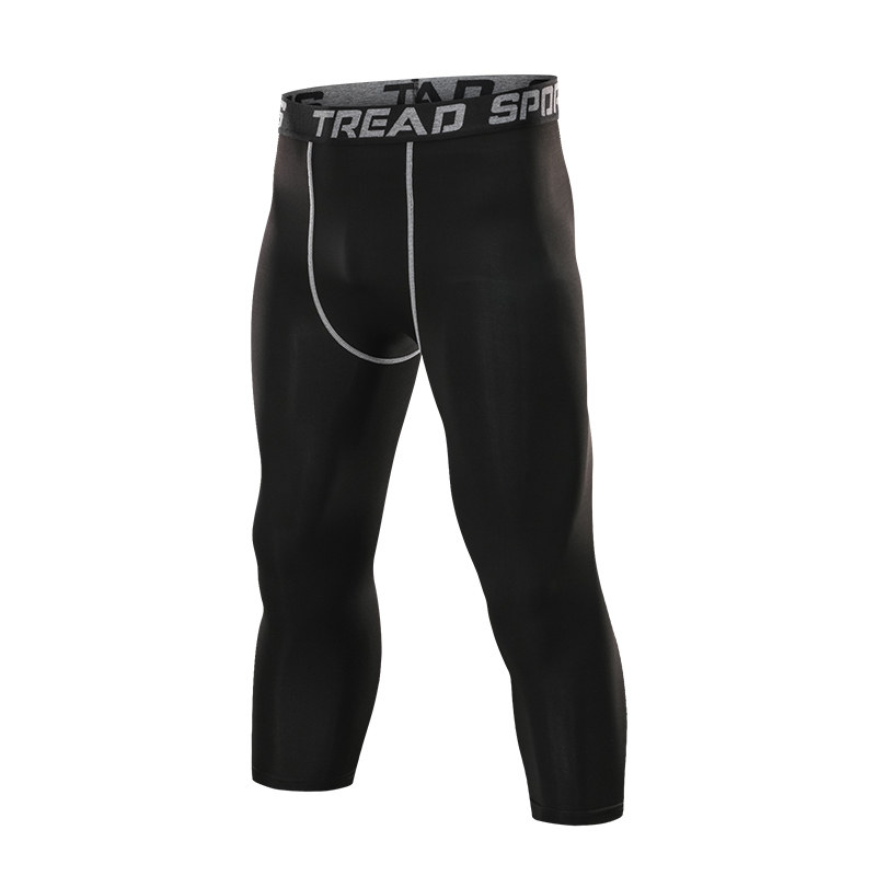 High stretch sports seven-point men's leggings Basketball football training pants Sports suit Fitness base warm pants summer