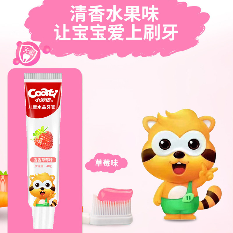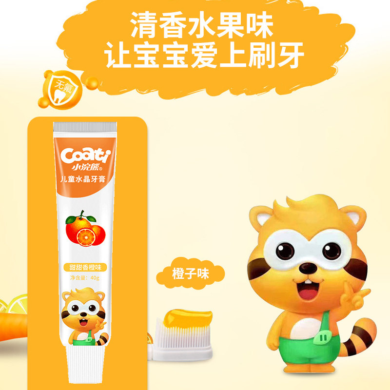 Small raccoon child toothpaste 3 years old 6-12 years old no fluoride fruit taste toothpaste infant toothbrush suit 40g