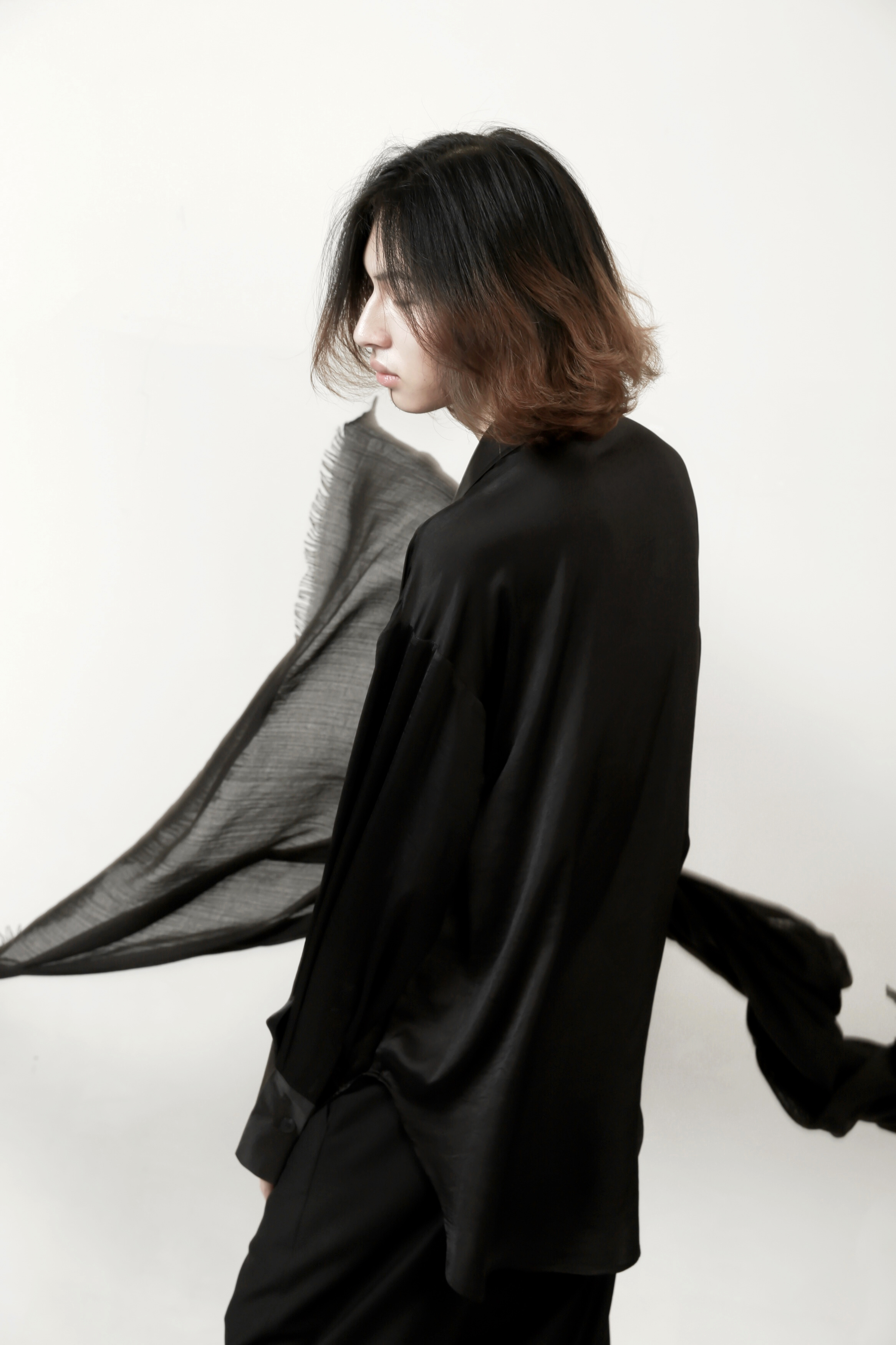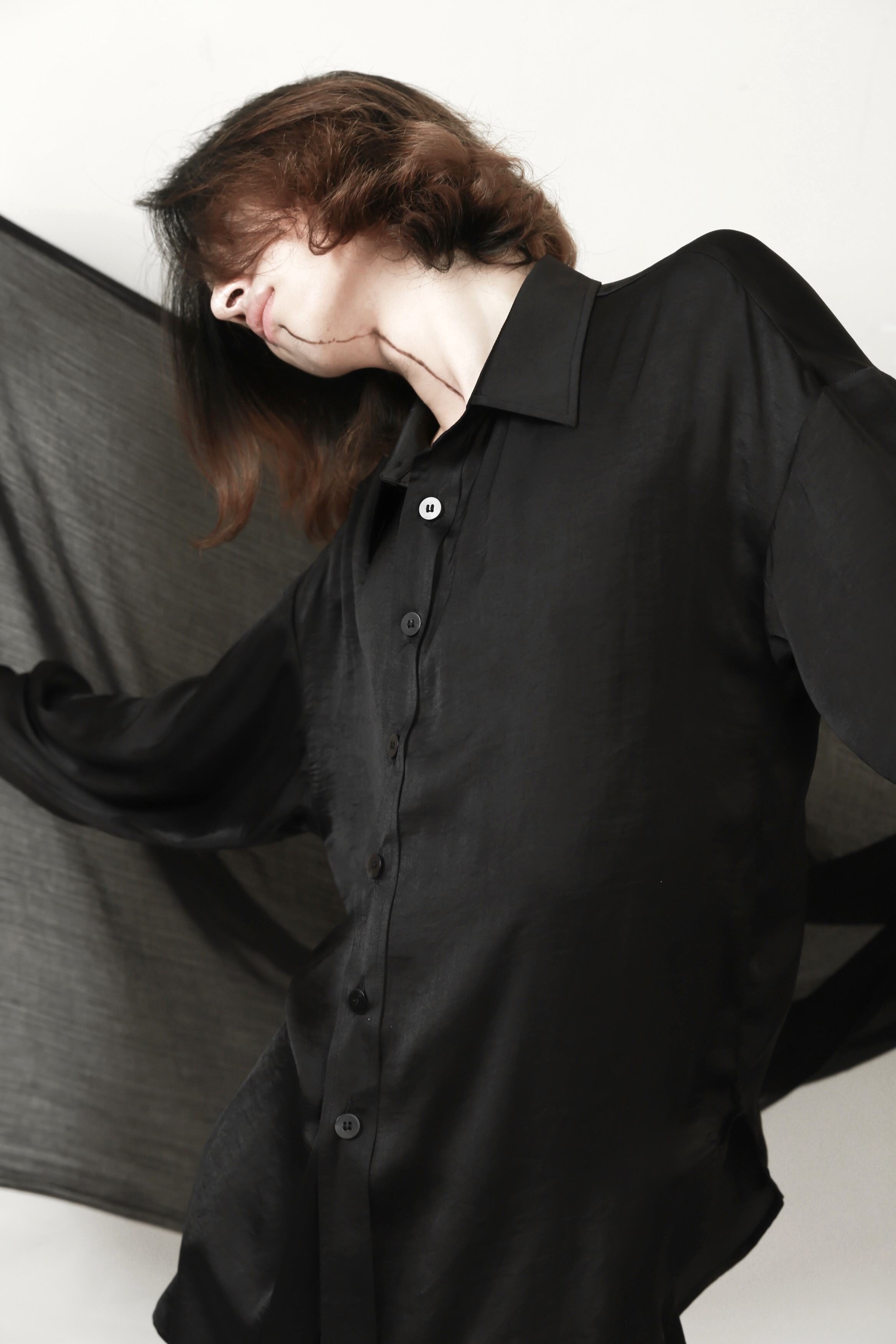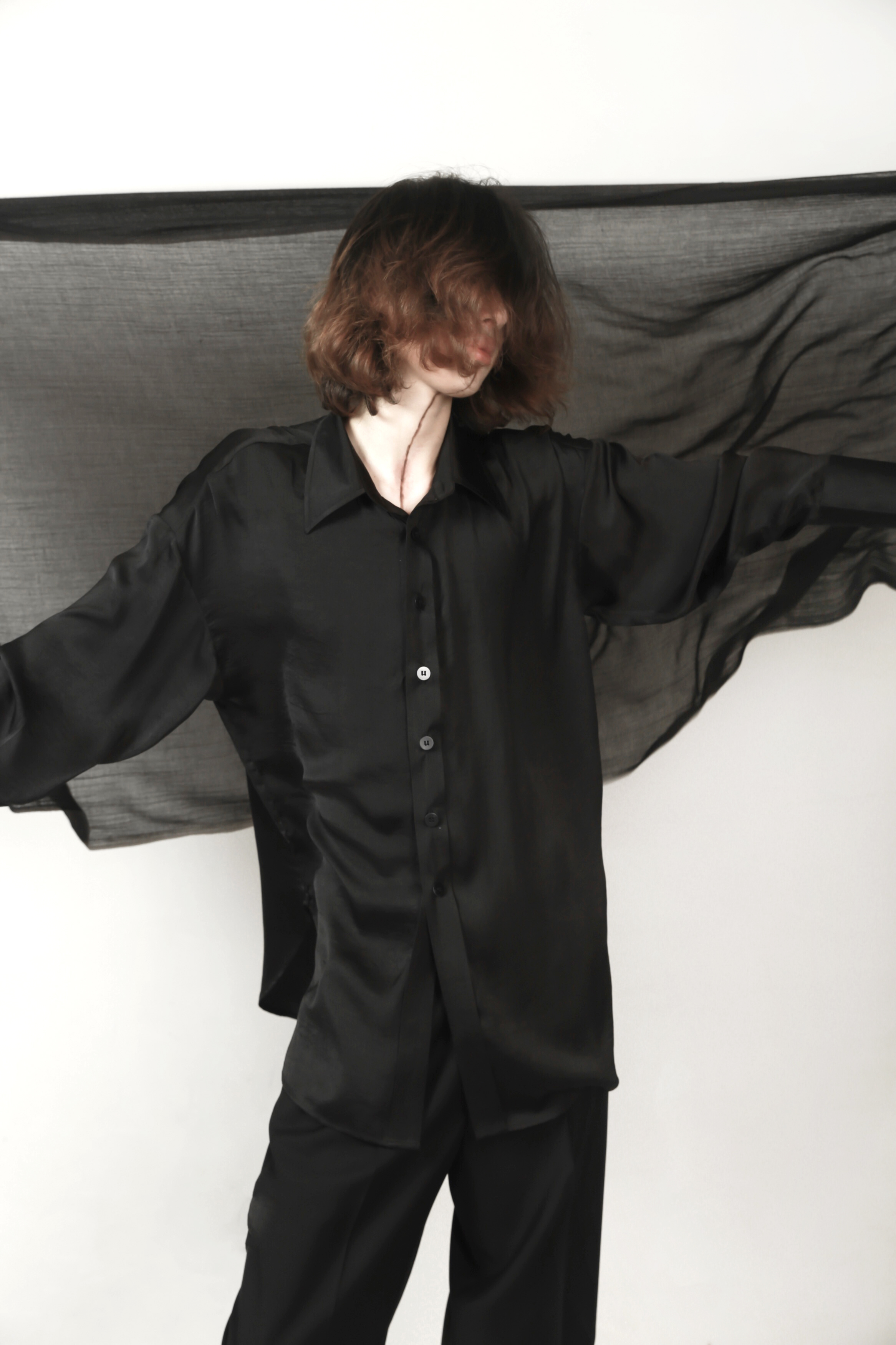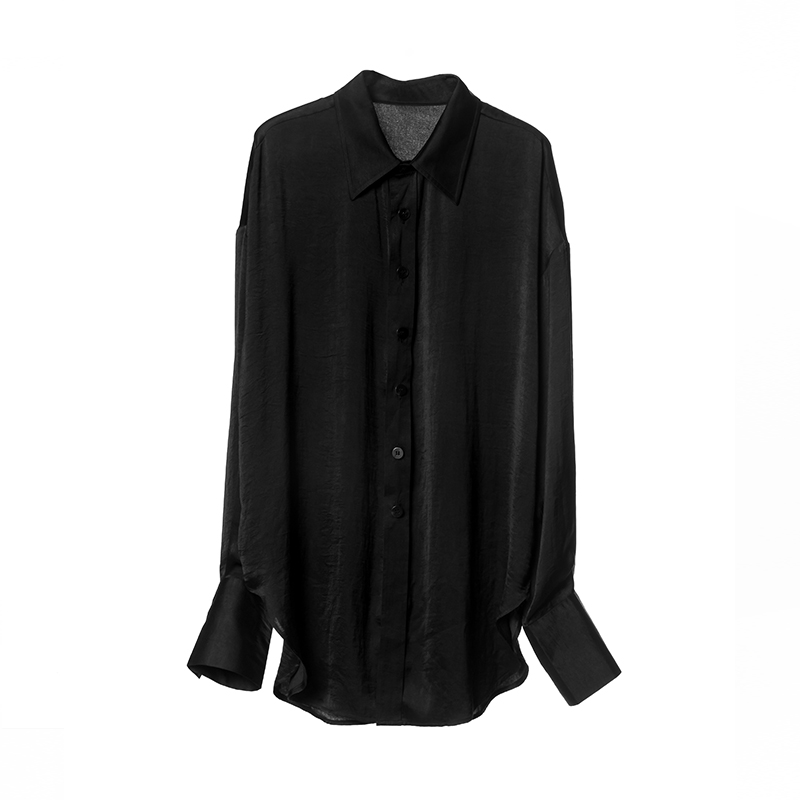 VAPOURBLUE black satin shirt autumn men's and women's high-end design niche silky drape long-sleeved top