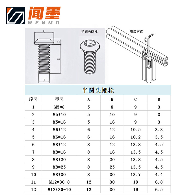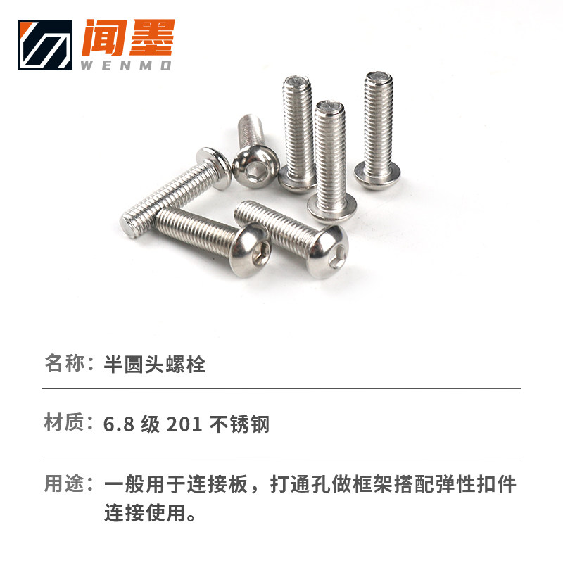 201 stainless steel M4 * 6 semi-circle head bolt 201 stainless steel M5 * 8 semicircle head bolt 201 stainless steel M5 * 10 semicircle head bolt 201 stainless steel M5 * 12