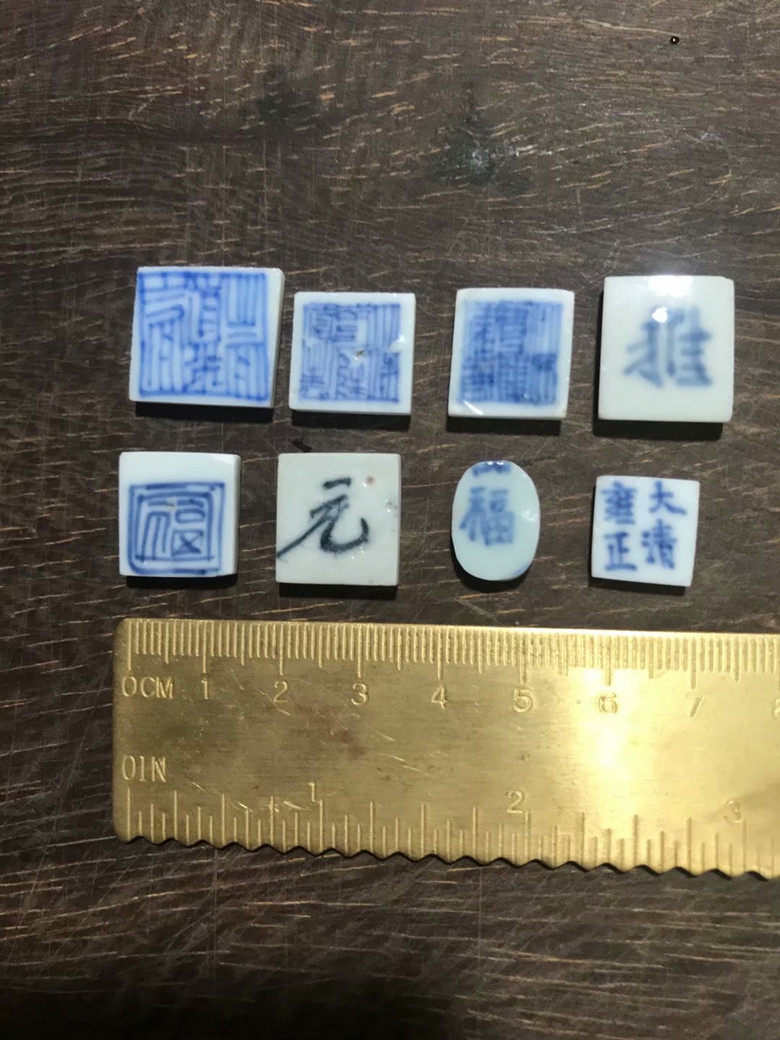 J689 Ming and Qing dynasty ancient porcelain piece jewelry can be wrapped in silverware to make a ring generous and beautiful antique ring surface 88 pieces