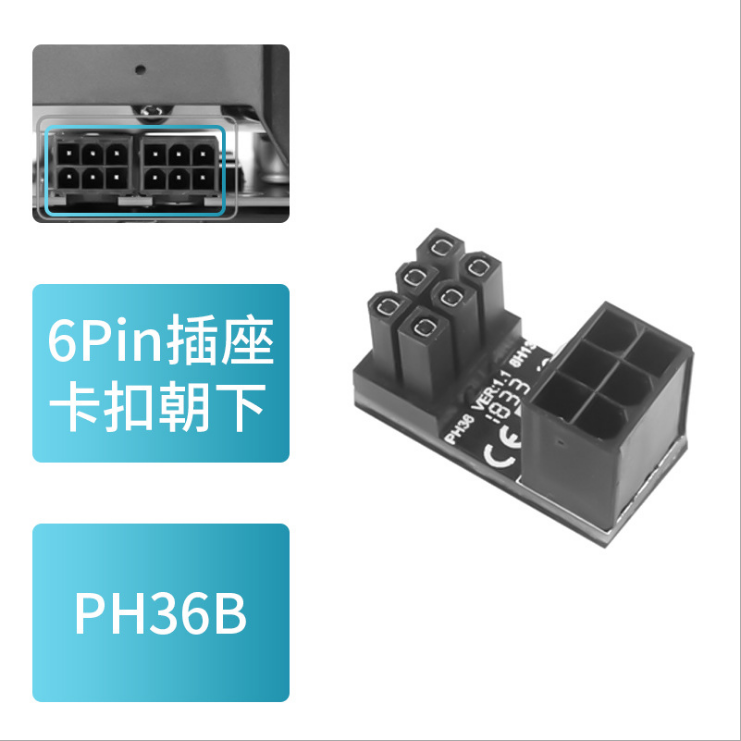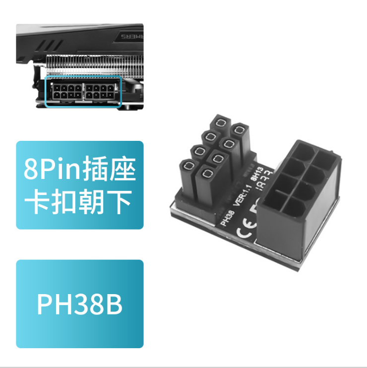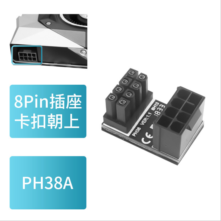 Graphics card elbow graphics card right angle 6P8P power steering joint down 180-degree turn head down back line