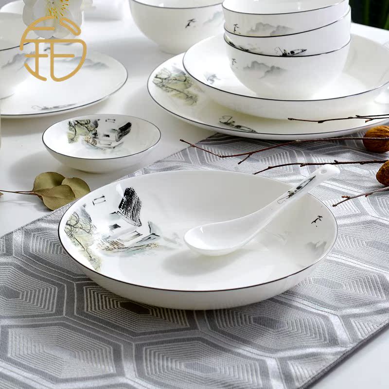 Platinum Yosen Boutique High-end Chinese dish dish set ink ink household terminal clothesGift ceramic soup dish