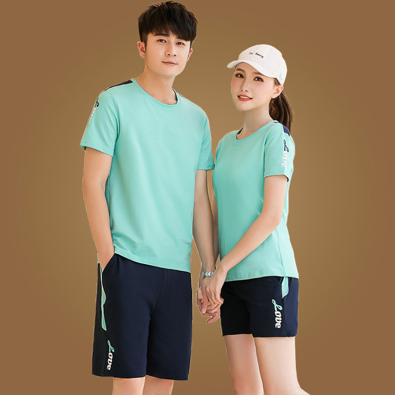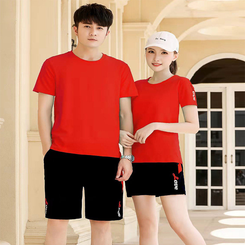 Emotional Couples Clothing Sports Suit Summer Running Men and women Dancing Round Collar Short Sleeves T-shirt Shorts Students Class two sets