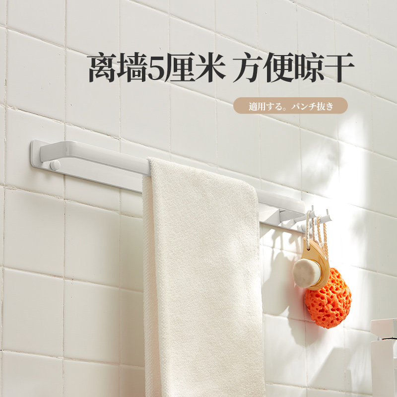 Nordic Free Punching Makeup Room White Towel Rod Bathroom Wall-mounted Shelterspace Aluminum Hook Fur Towel Rack