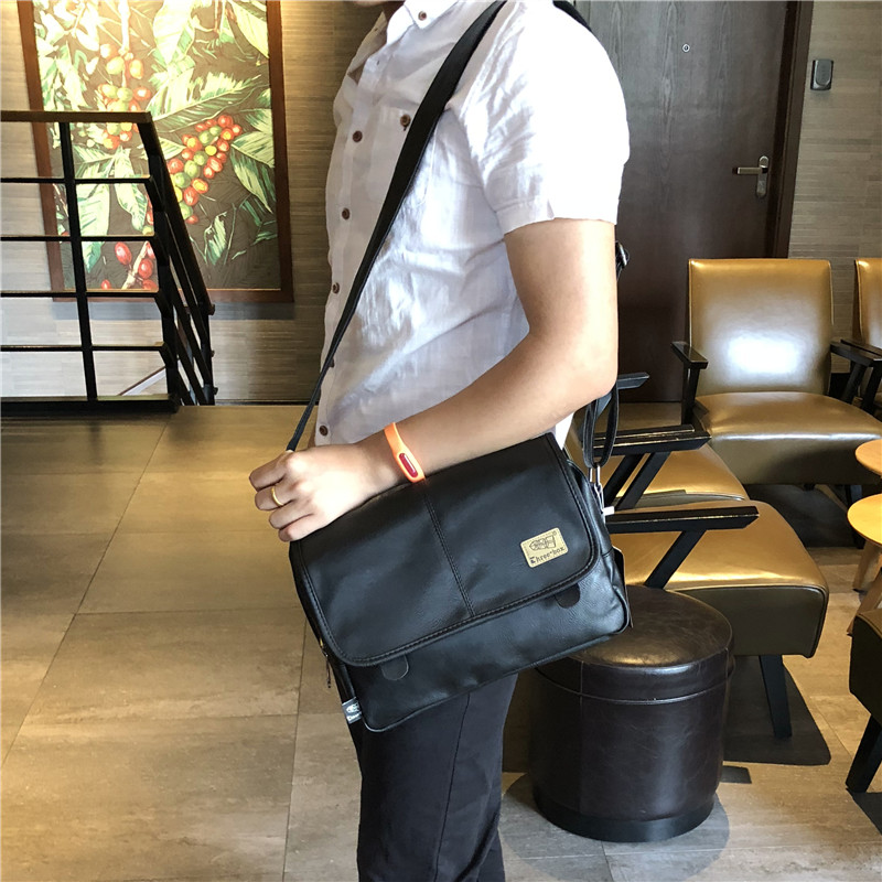 Hong Kong Chauber Package 2020 New men's single shoulder inclined satchel leather backpack Retro student College Package-Taobao