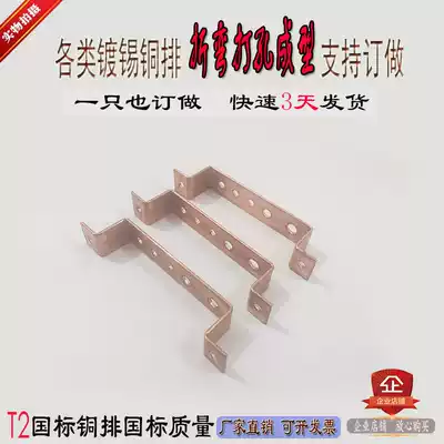 Purple copper row copper plate punching bending custom processing tinned distribution box copper row special shaped small copper row cutting custom