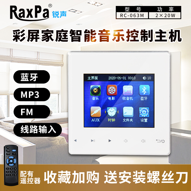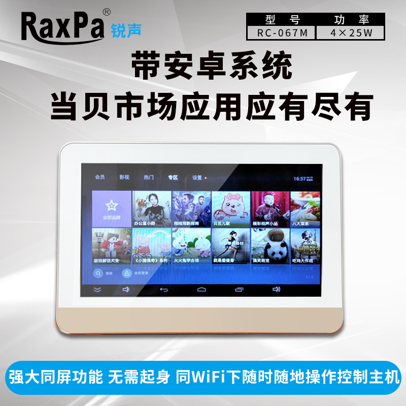 Type 86 home background music host power amplifier panel 7 inch WIFI controller hotel music sound set