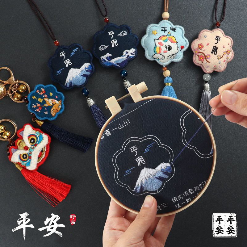 diy handmade send daddy peace charm embroidery material package self-embroidered peace fu money bag to send boyfriend amulet to wake up the lion