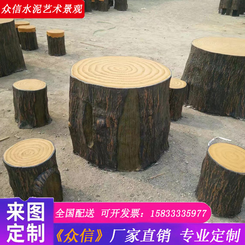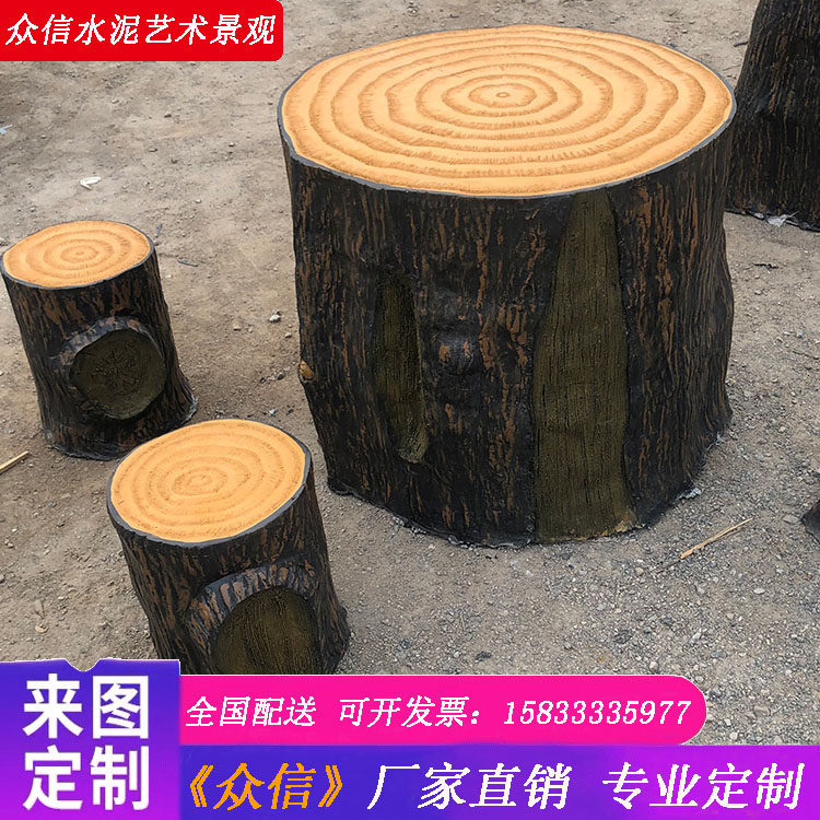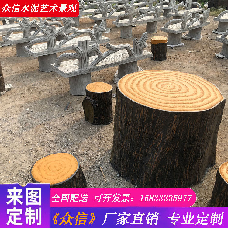 Cement imitation wood chairs imitation wood grain table stool concrete imitation bark seat imitation tree root stool outdoor table stool