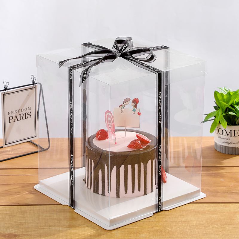 Transparent Birthday Cake Box 6 8 10 12 14 Inch Double Plus High Barbie Square Home Packaging Box Customised
