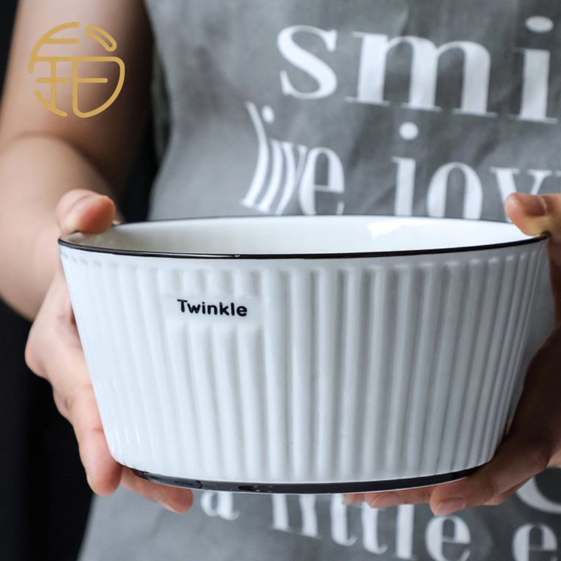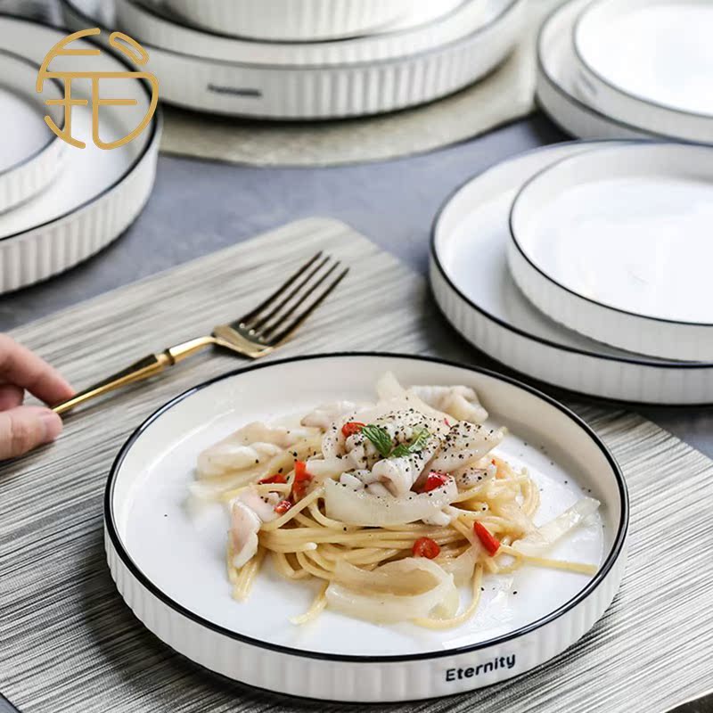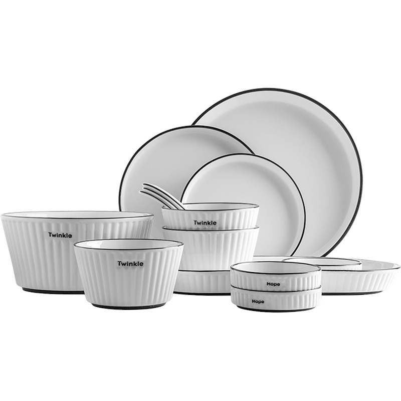 Platinum Yuezen Nordic Wind Bowl Dish Cutlery Sets Home Day Lovers White Collar Creative Vertical Striped Ceramic Rice Bowl tray