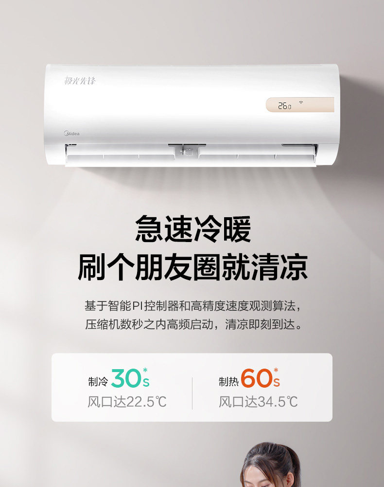 Midea 1 5 hp inverter first-class energy efficiency cooling and heating dual-use smart home wall-mounted air conditioner wall-mounted 35MHA