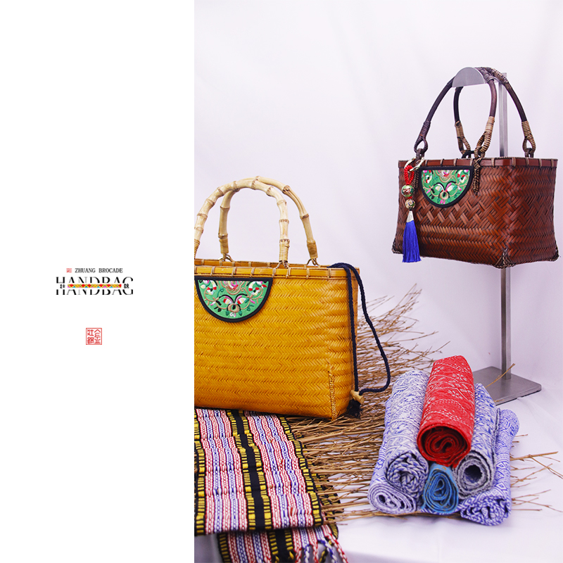 Golden Zhuangjin 2021 Guangxi Ethnic Wind Miao Embroidery Cup Cushion Bamboo handmade basket handbag holiday mid-size small number Support Custom