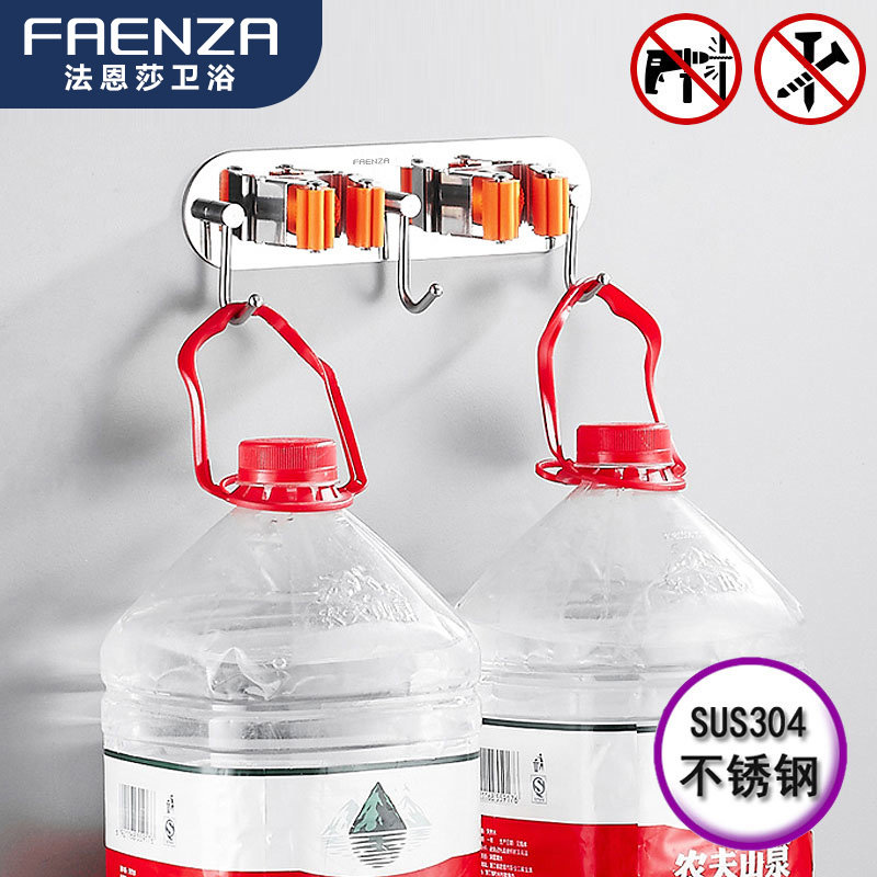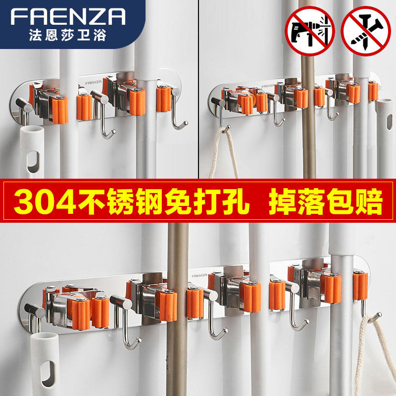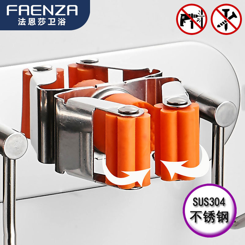 Farnsa Mop Clip Wall-mounted Free 304 stainless steel mop rack Makeup Room Mop Hooks Sweep the hanger