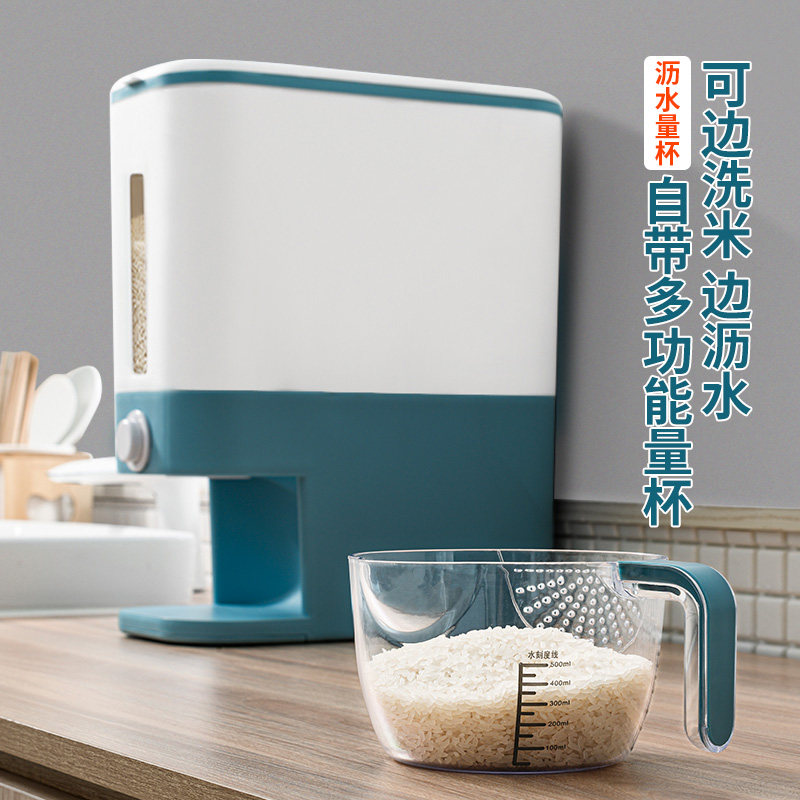 Rice bucket blue upgrade (large capacity metering rice cup + side storage box)