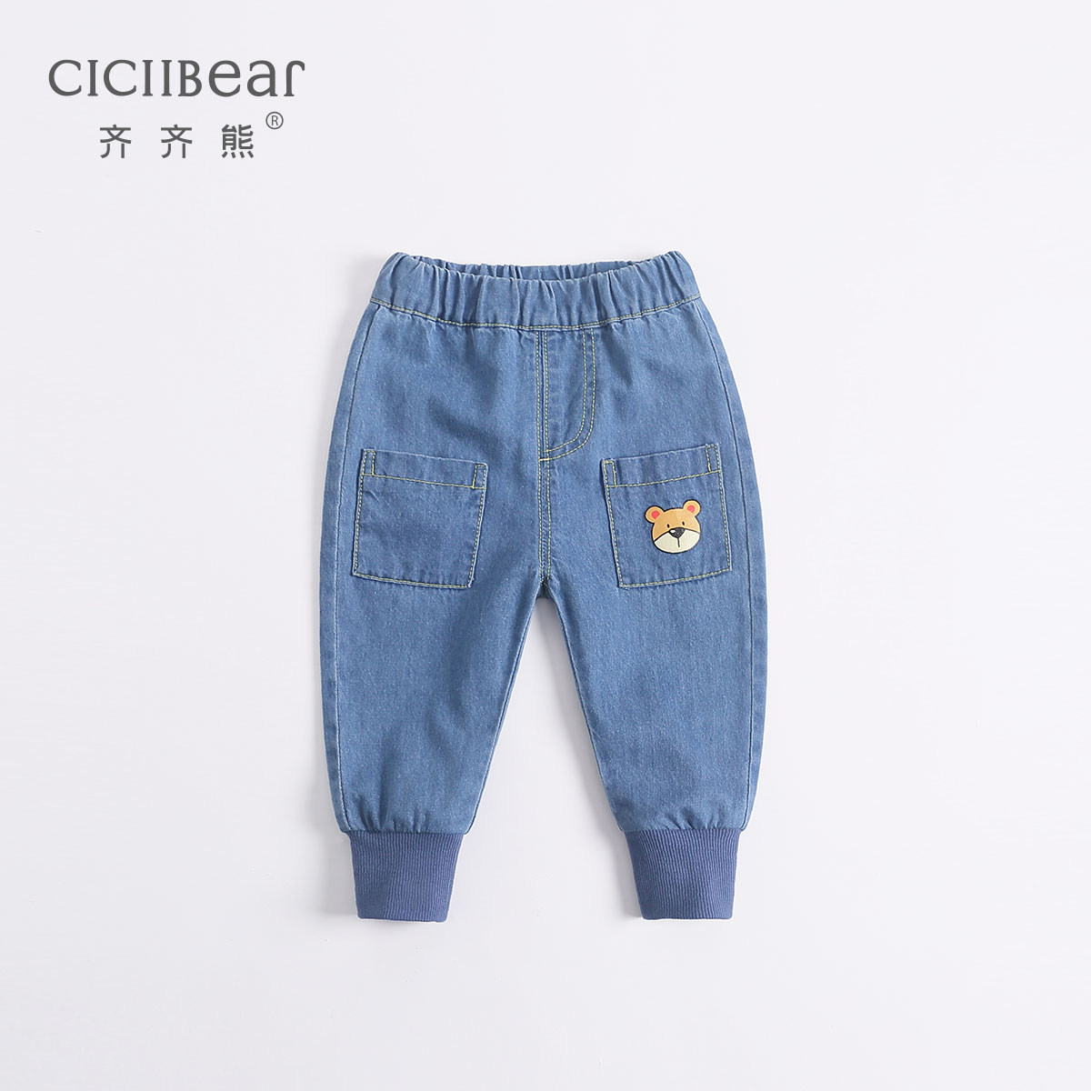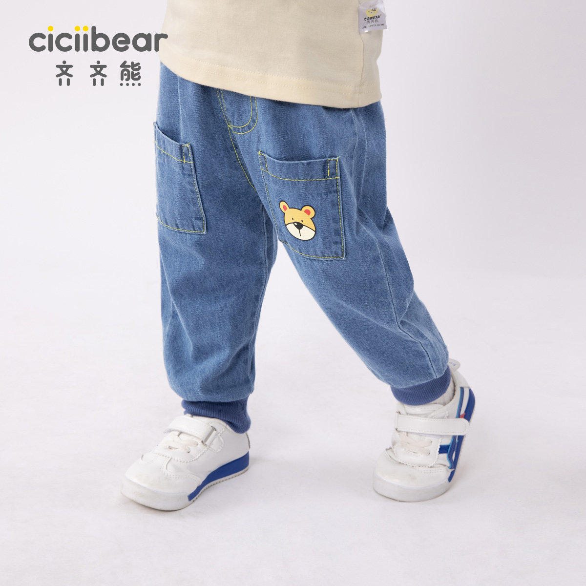 Zizi Bear Boy Pants Spring Autumn Money Children's Baby Jeans Pure Cotton Baby Casual Pants Kiddie Long Pants Bunches