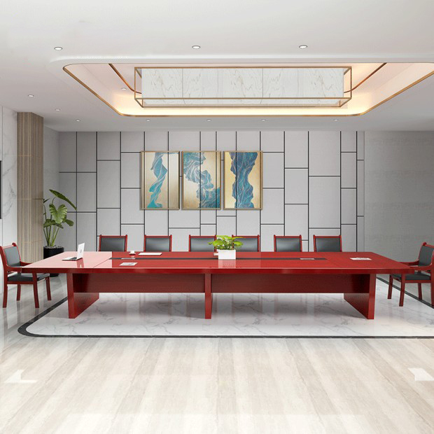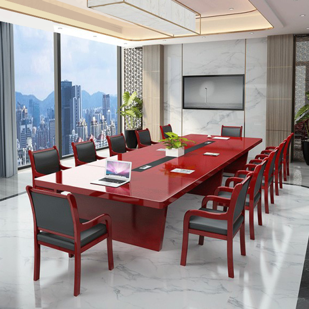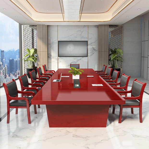 Office Furniture Conference Table Long Table Large Solid Wood Leather Baking Lacquered Table And Chairs Combined Rectangular Reception Training Table Strip Table