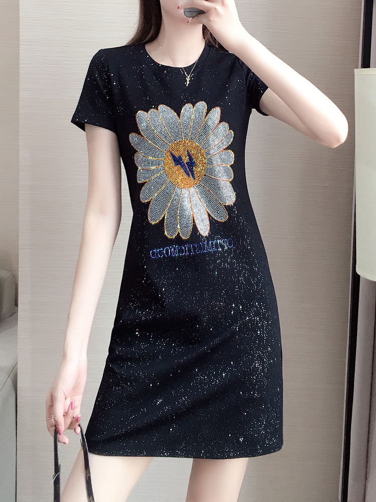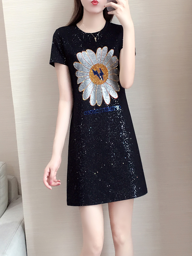 Tide Cards Big Size Women's Dress 2022 Summer New Chicks Fat Mm Fashion Casual Short Sleeves Hide and Thin Ocean Dress
