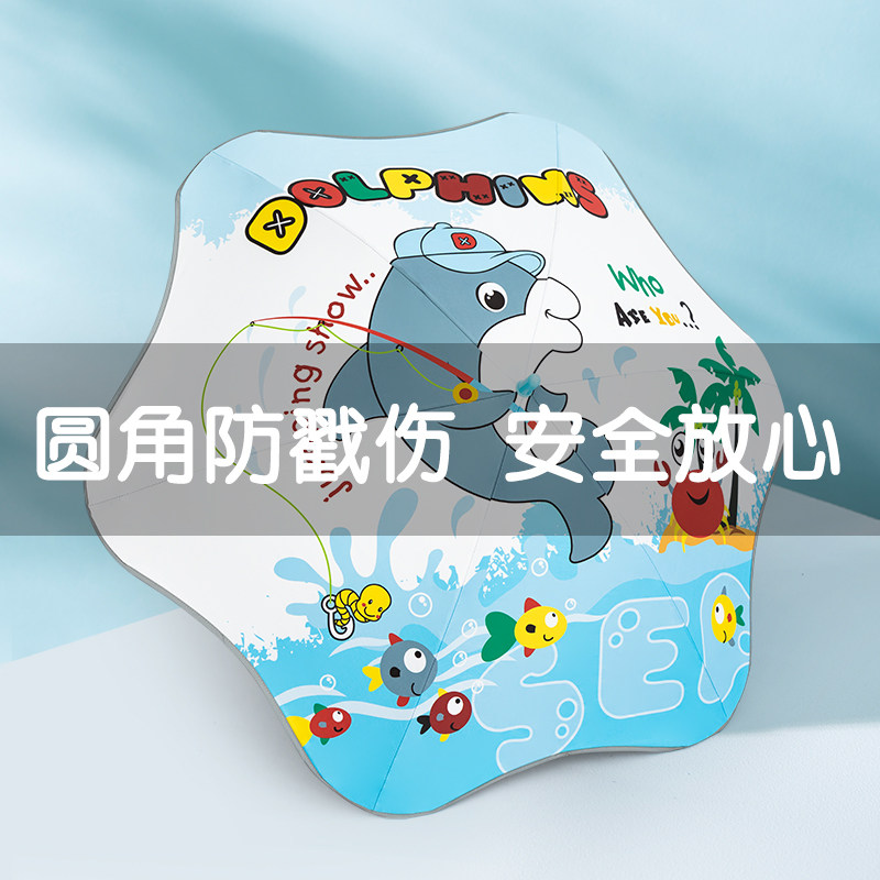 Children's umbrella female sunscreen cartoon rounded small umbrella male long handle kindergarten baby primary school children go to school with umbrella