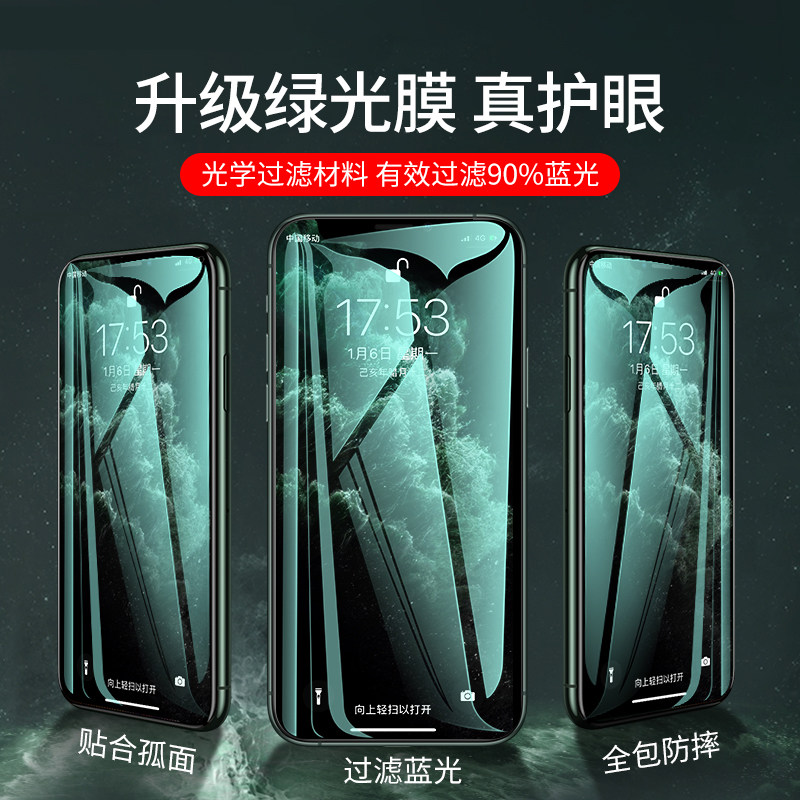 Green light film applies Apple 11 steel chemical film iPhone12 mobile phone pro fullscreen x anti-fall 11ProMax covering xr film 8plus full package edge XS anti-fall se2 anti-fall