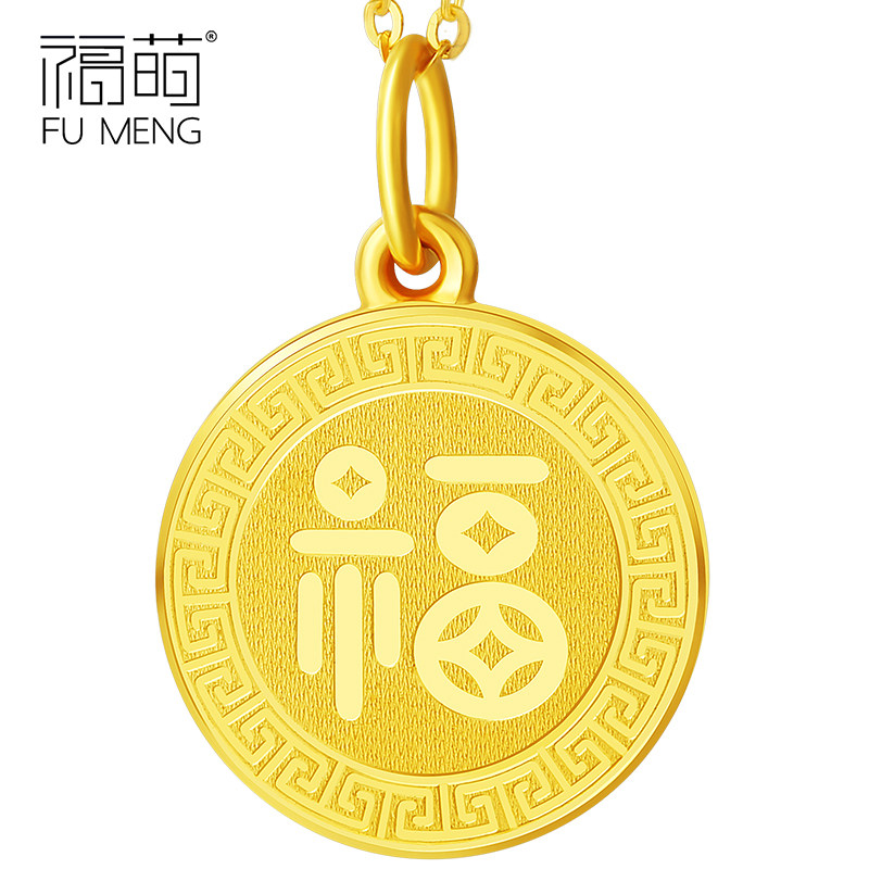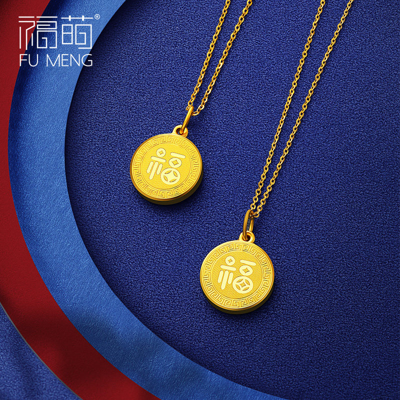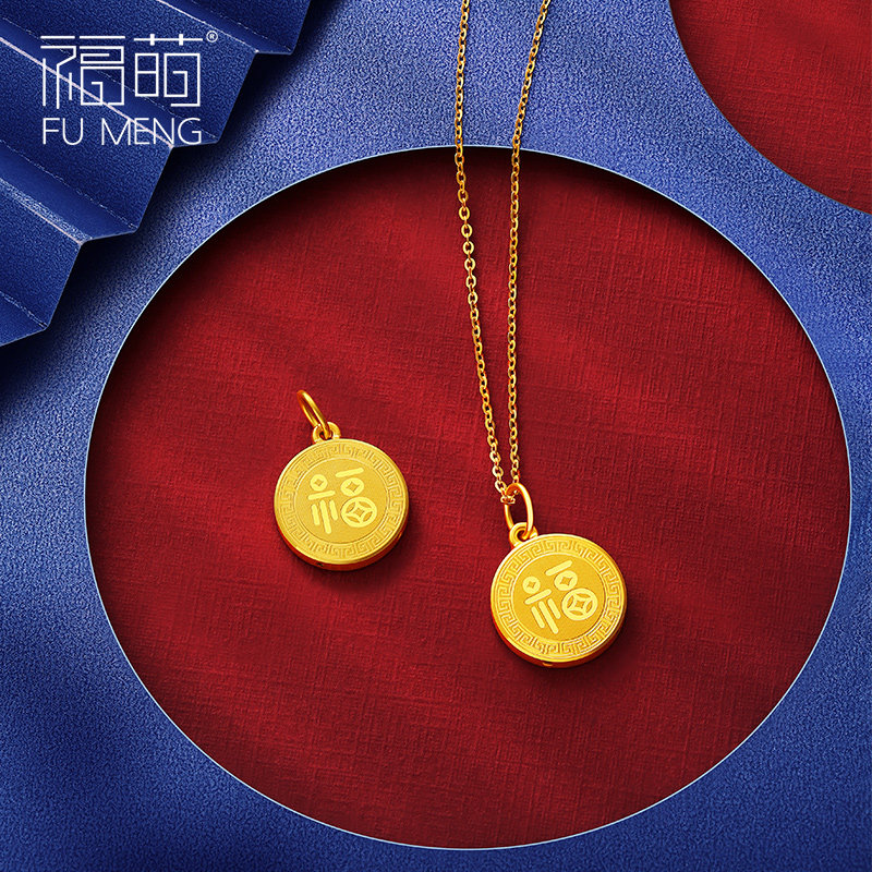 Focute Gold Small Ford-card Pendant Women's New Fashion 999 Foot Gold Necklace Pendant Back Tattooe Character Pendant Mini