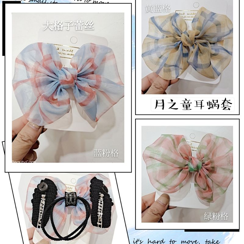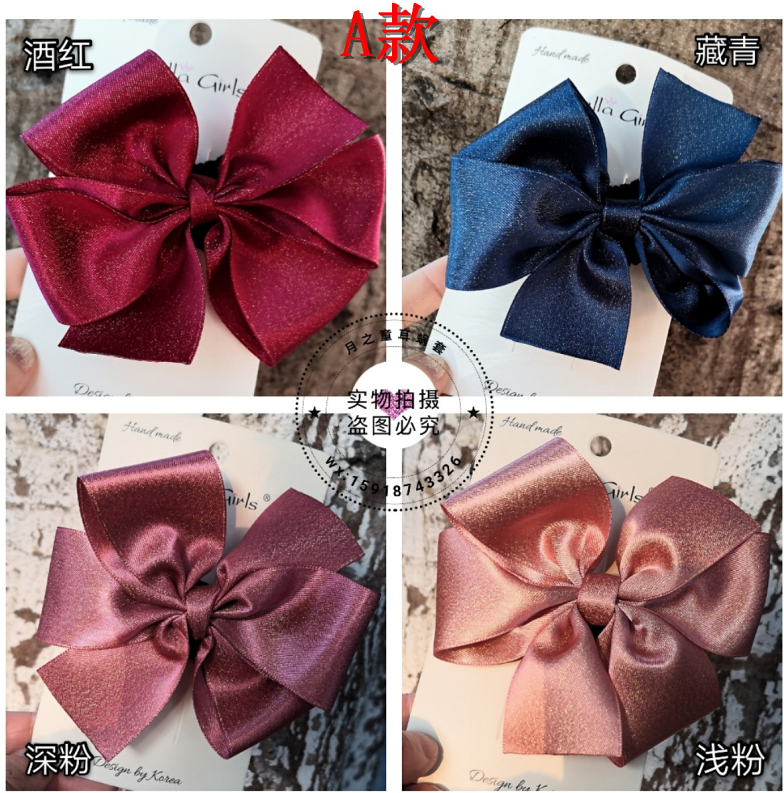 Child Ears of the Moon American AB Dolphins Big Flowers Children Adult Hair Clip Silk Ribbon Bow Tie Matt