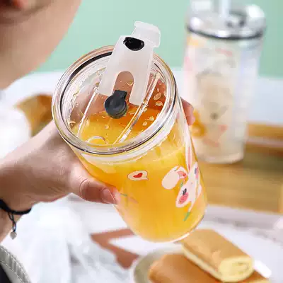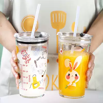 Glass straw cup High facial value net red water cup Large capacity creative cup Adult cute kettle drink cola cup