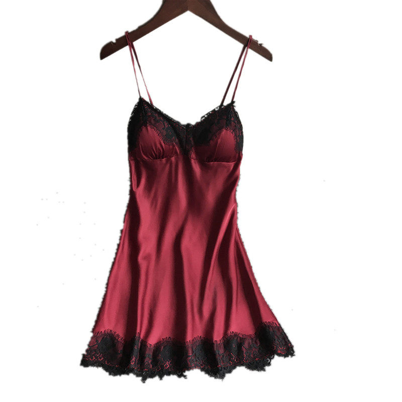 New triumph pajamas women's belt chest cushion sling sexy nightgown Ice Silk summer small chest gathering underwear