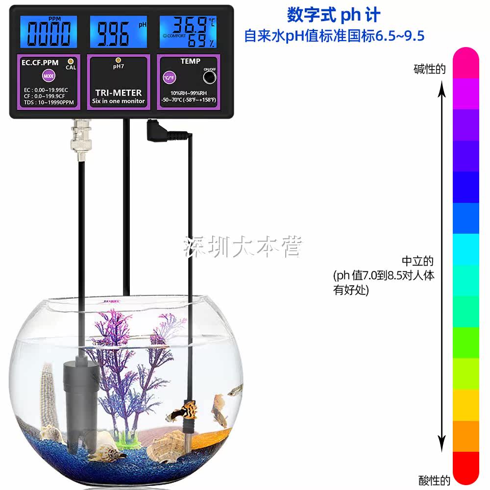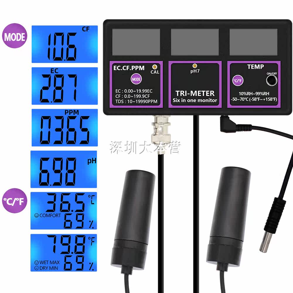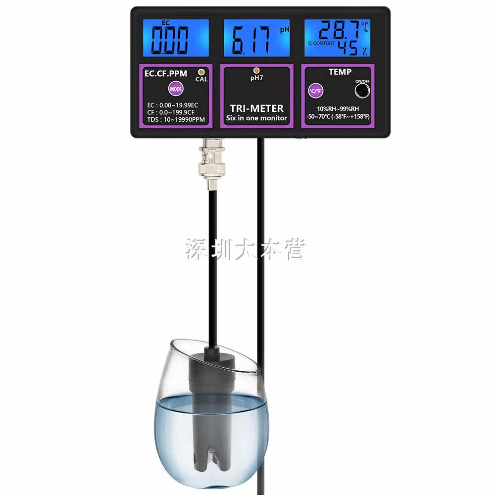 6-in-1 PH meter monitor test PH temperature EC CF RH TDS digital water quality multi-parameter tester