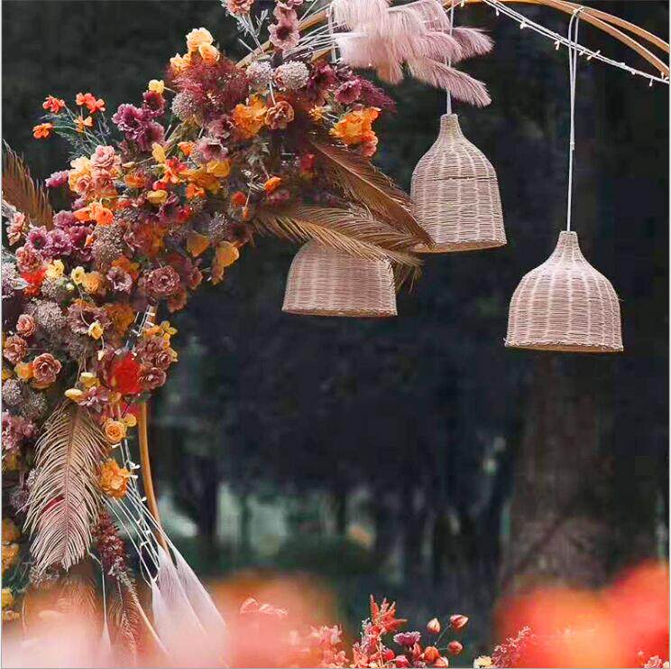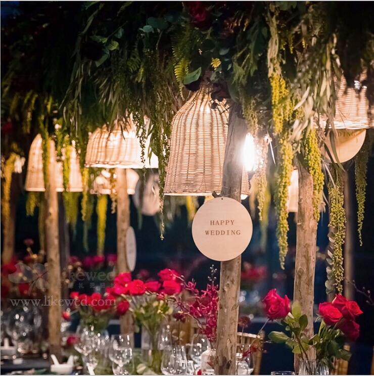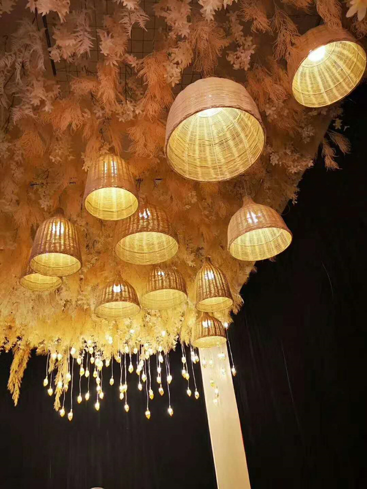 Wedding props Mori series Bamboo Weaving Vines Wine Glass Lantern Outdoor Wedding Arrangement Shop Window Suspended Ceiling Decoration Vines Chandelia