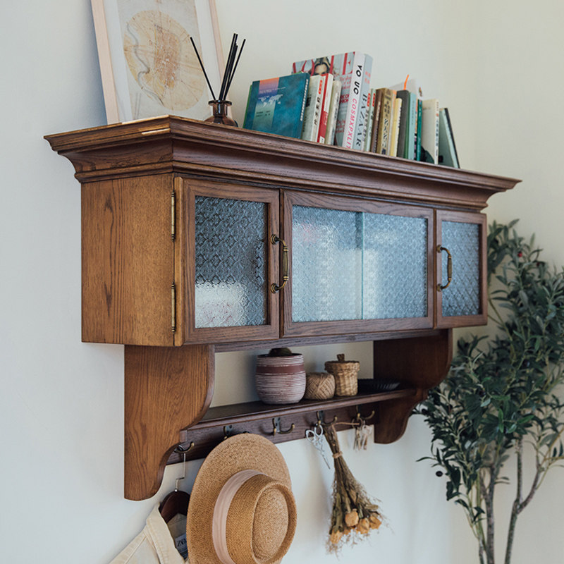 North American town American solid wood wall cabinet Retro storage wall cabinet closet kitchen shelf wall storage hanging cabinet