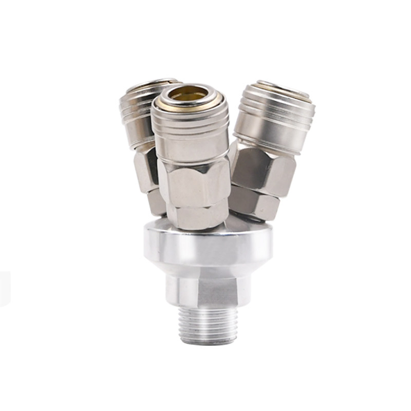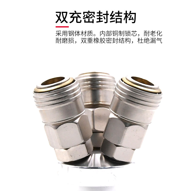 Pneumatic air compressor two-way three-way air pump trachea quick plug three-fork C-type quick connector self-locking round accessories Daquan