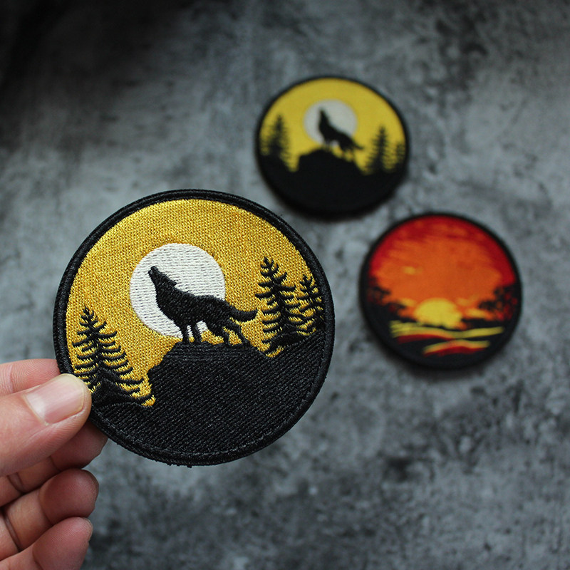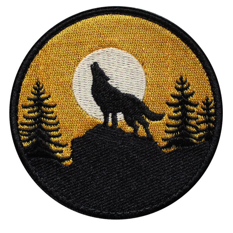 Moon Night WOFL Wolf Howl Embroidery Magic Stick Nylon Buckle Devil Stick Morale Badge Round Arm Badge Send Sewing Hair Side