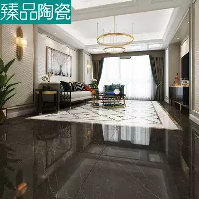 Light luxury all-body marble tiles 800x800 all-ceramic gold-plated tiles Gold silk glaze living room non-slip gray floor tiles